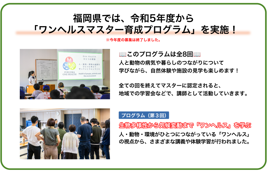 令和5年度から福岡県が実施している「ワンヘルスマスター育成プログラム」が今年度も開始されました!
