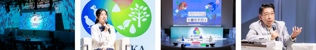 まず「海を守る」のトークショーには、俳優でタレントの金子貴俊さん、福岡県ワンヘルスマスターの田中沙弥さん、福岡県の服部誠太郎知事、ニュースキャスターの佐々木理恵さんが登壇。